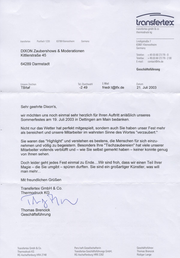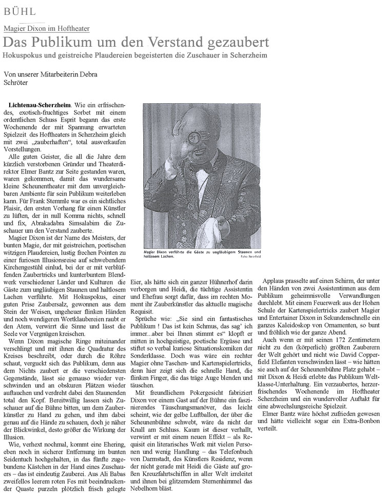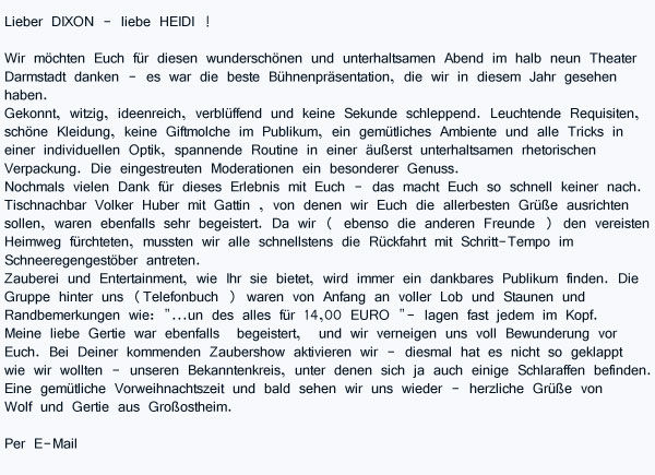 ...weitere aktuelle Kritiken & Referenzen bitte anfordern !